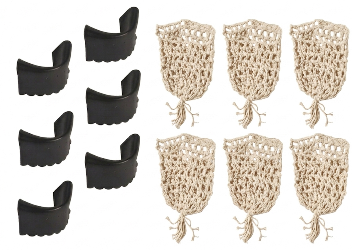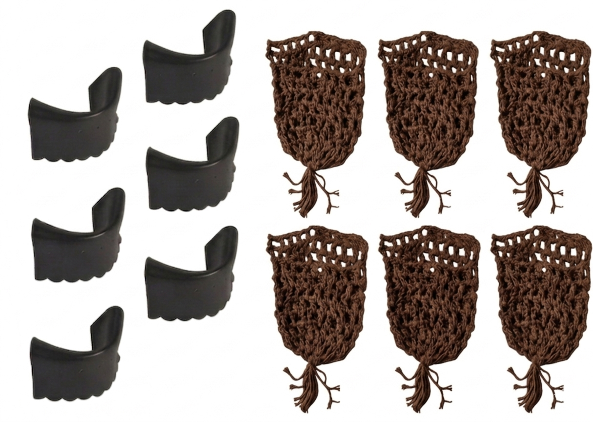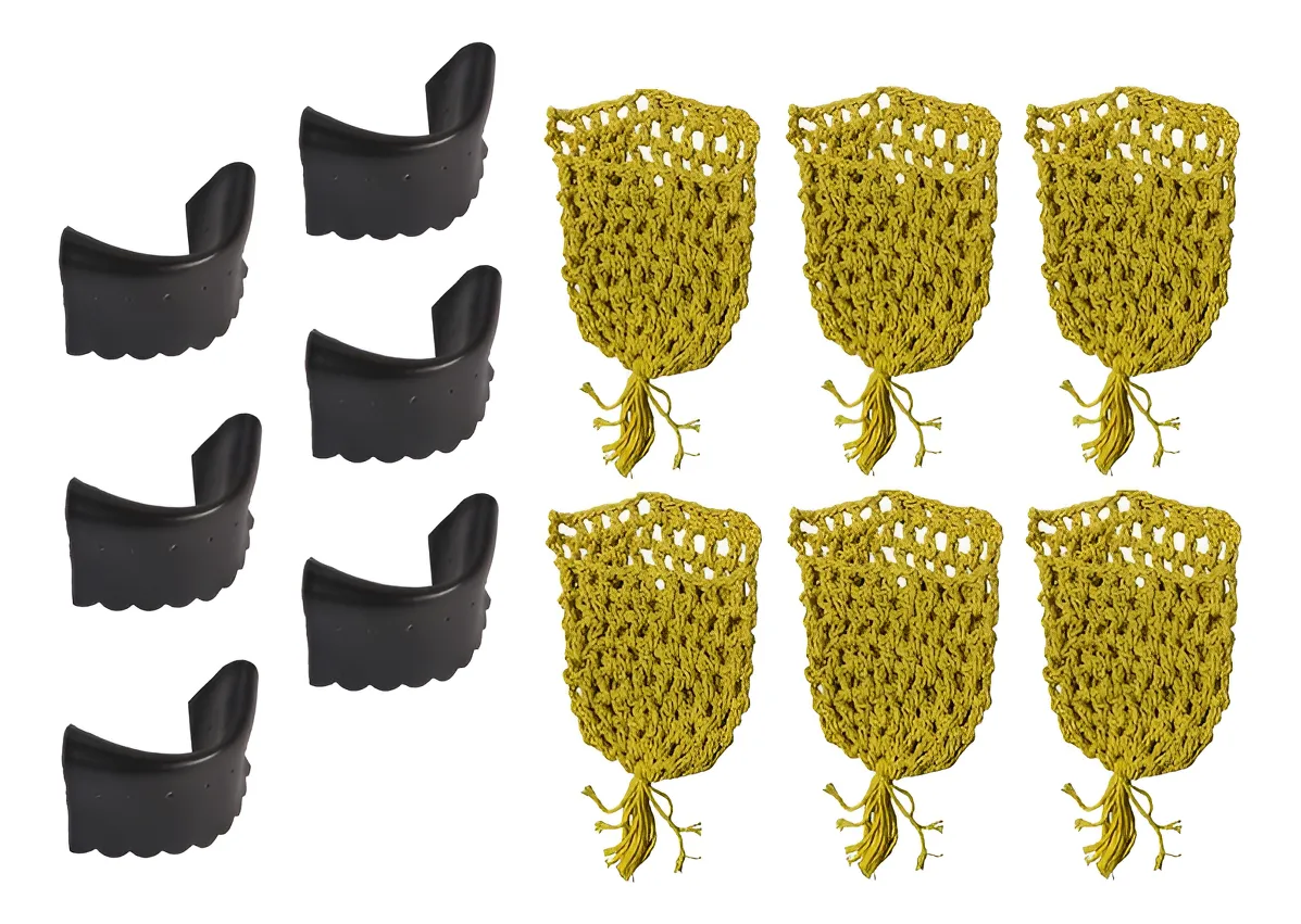 01 jogo de redinha c/ 06 peças barbante 01 jogo de guarnição c/ 06 unidades