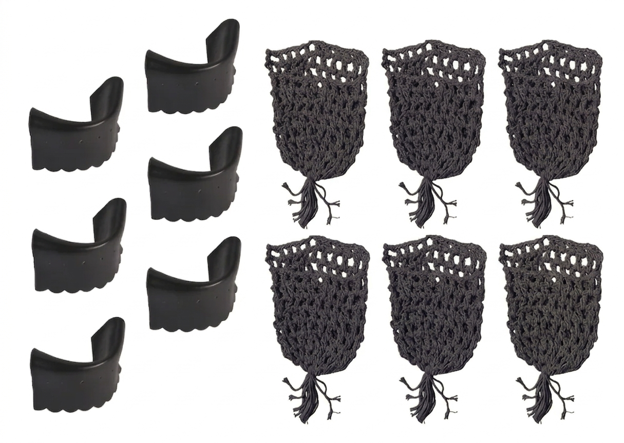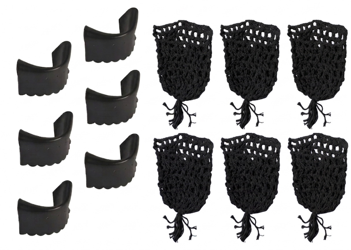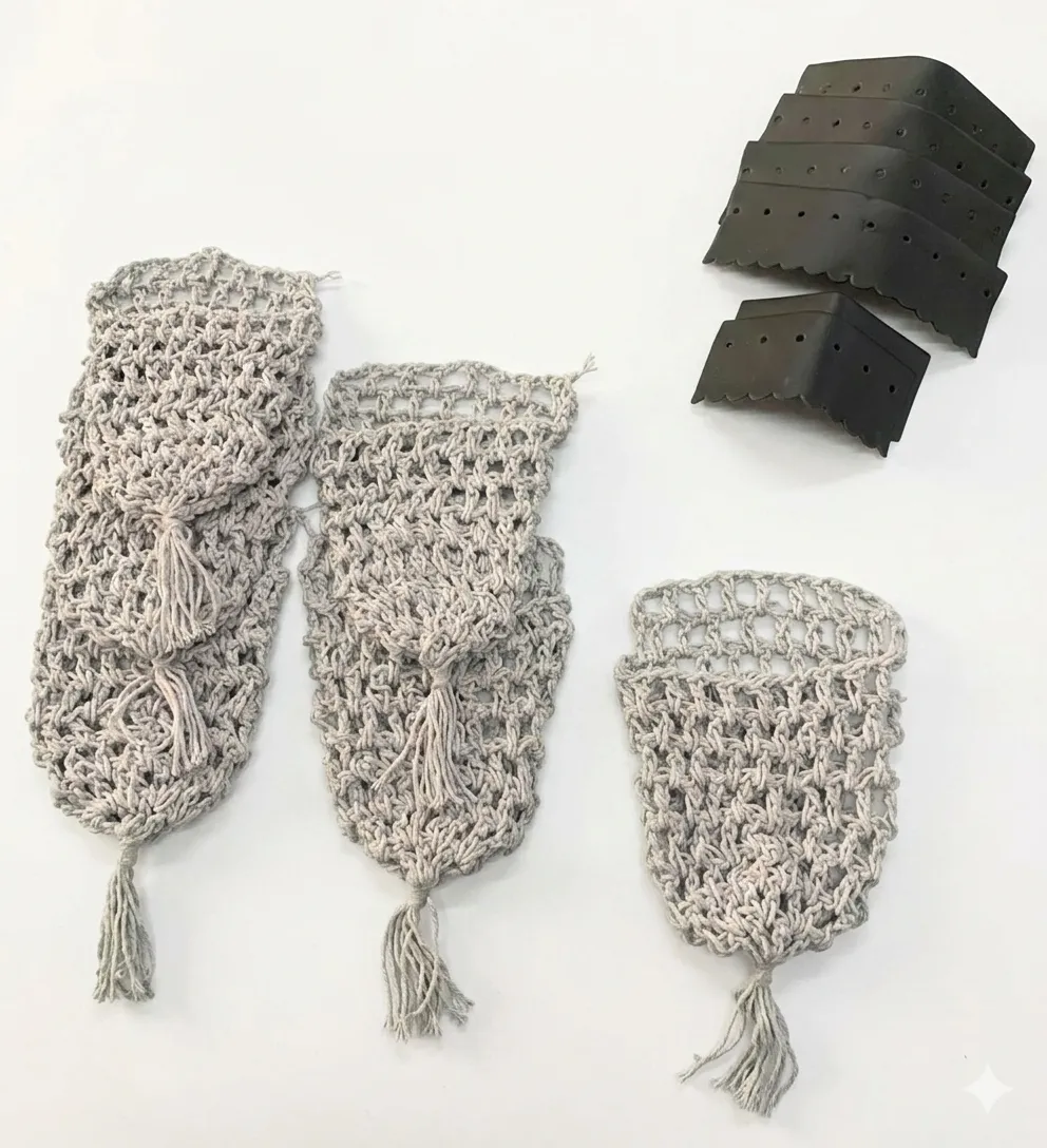 01 jogo de redinha c/ 06 peças barbante 01 jogo de guarnição c/ 06 unidades